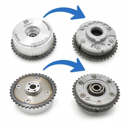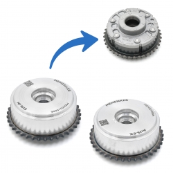 Original BMW N43, N53, and N54 variable valve timing gears are known for rattling during deceleration and sticking mechanisms. The root cause is the development of play in the blades of the rotor inside the gear. Over time, this leads to unstable timing system operation and costly replacements.